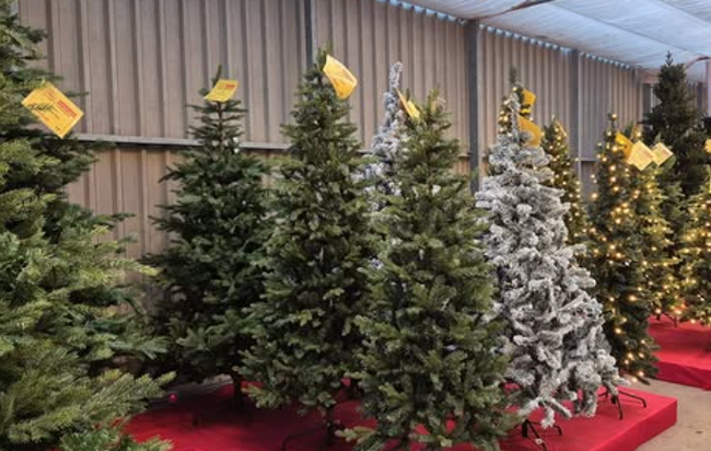 - Verse kerstbomen en kunstkerstbomen in verschillende maten;