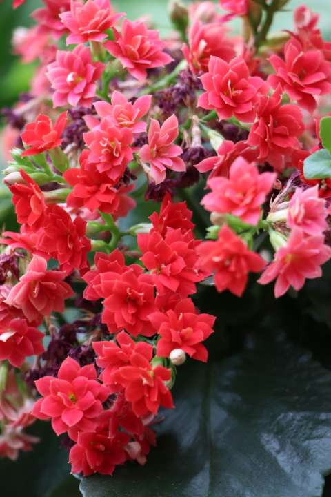 De kalanchoë is perfect om te combineren. Door zijn compacte formaat kun je meerdere planten bij elkaar zetten voor een kleurrijk geheel. Kies bijvoorbeeld verschillende tinten binnen dezelfde kleurfamilie voor een rustig effect.